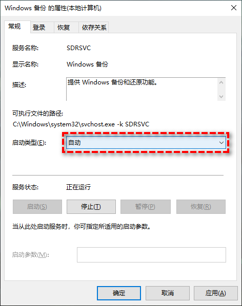 2. 在新弹出的“服务”中双击“Windows备份”,将“启动类型”设置为“自动”,保存并关闭。
