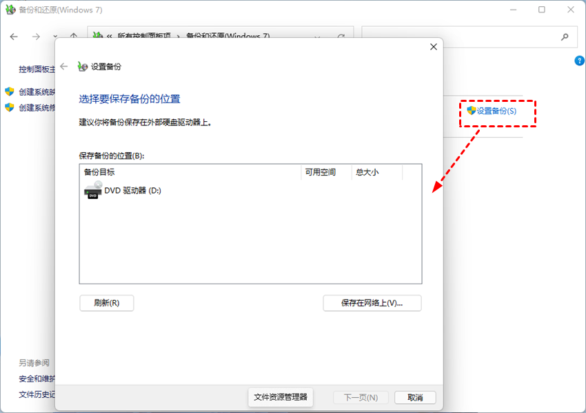 ☛ 要使用备份和还原 (Windows 7)在Win11中备份指定文件,请按照以下步骤操作: