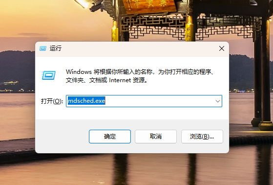 1. 当您的电脑处于安全模式时,按 Win+R 打开运行对话框,输入 mdsched.exe,然后按 Enter。