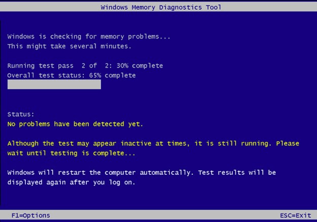 3. 系统将重启,并自动启动诊断测试。测试完成后,系统会显示内存是否存在错误。