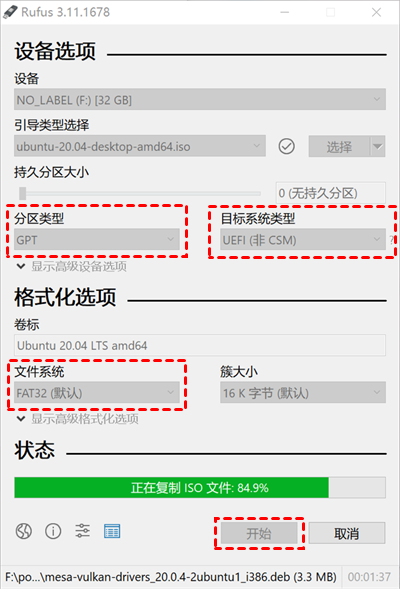 6. 等待Rufus从ISO文件创建可启动U盘。 制作完成后,您将在 状态部分下看到一个进度条。