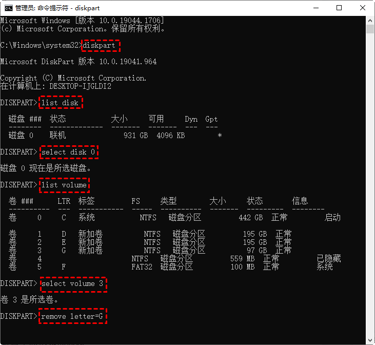 通过CMD删除驱动器号