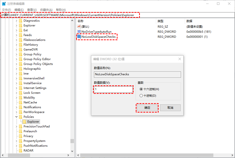 禁用Win10磁盘空间不足警告提示的2种方法!