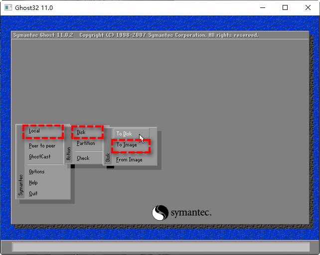 我们该如何执行Ghost硬盘备份任务呢?请您先准备好一个空间足够容纳硬盘备份镜像的外部硬盘(容量≥原硬盘1.2倍),将其连接到电脑,然后打开Ghost软件,在主界面中请您依次点击左下角的“Local -> Disk -> To Image”。