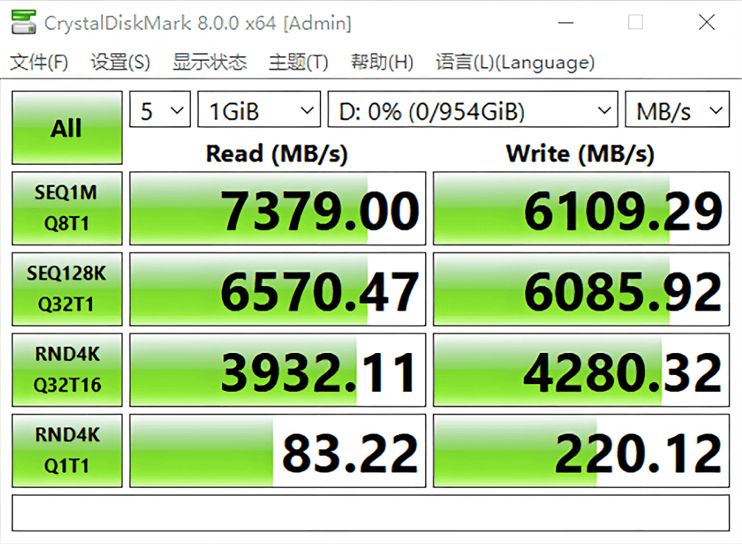 NVMe接口通过PCIe通道运行,理论带宽高达32Gbps(约4000MB/s)。