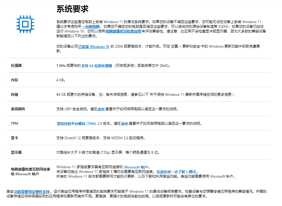 自微软推出Windows以来,Windows 11升级门槛频繁的成为热门的话题。在微软公布的Win11基本系统要求中,很多电脑都符合大多数要求,但有两点要求饱受用户争议:“TPM2.0(可信任平台模块)”和“八代及以上处理器”,这两点要求拒绝了大量用户,光是八代以上处理器就将2017年前的电脑拒之门外。