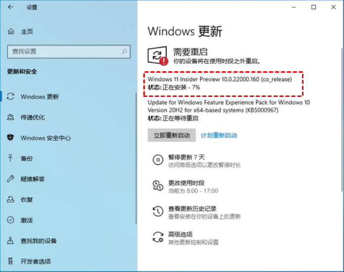 步骤6. 等待下载完成后选择“立即重新启动”或“计划重新启动”。重启后您将看到Win11桌面,至此升级Win11操作已完成。