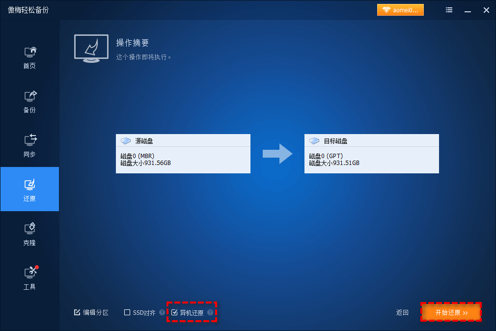 场景2:新旧电脑硬件配置不同(异机还原,避免系统引导失败)