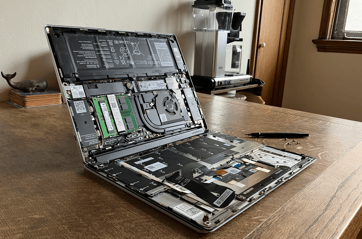 使用螺丝刀打开笔记本外壳,拆下螺丝并轻轻打开外壳。