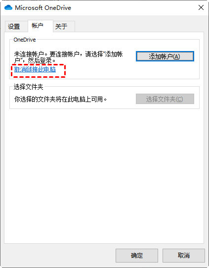 步骤2. 之后,您需要转到OneDrive设置中的帐户窗口,然后选择“取消连接此电脑”。