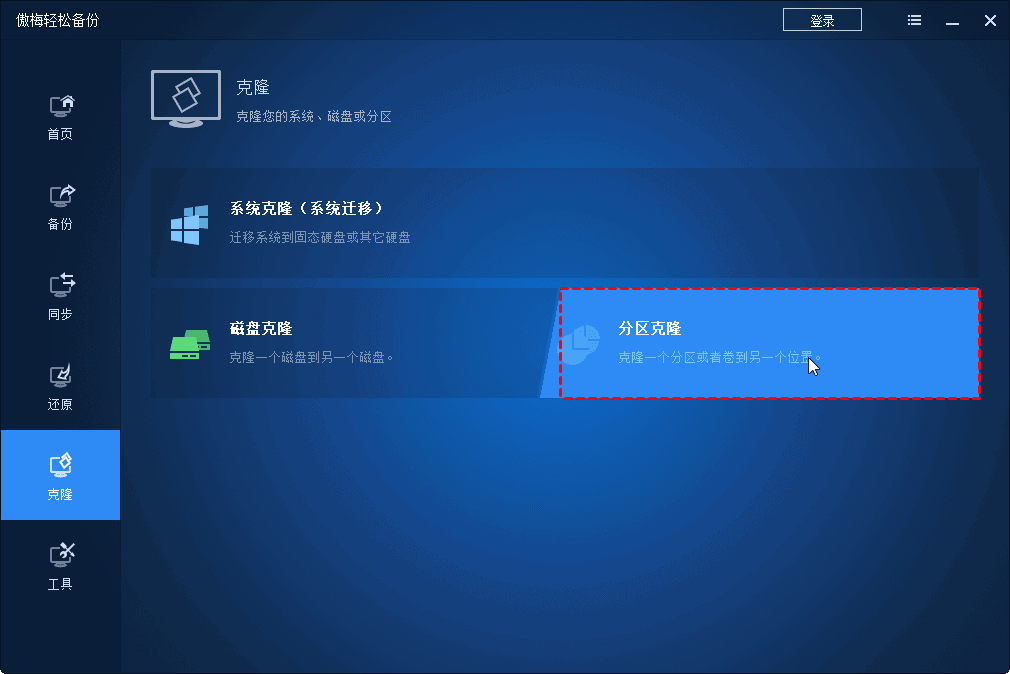 灵活选择这三种克隆功能可以帮助完成各种操作。现在,您可以到下载中心或点击按钮免费获取傲梅轻松备份,安装并启动它。