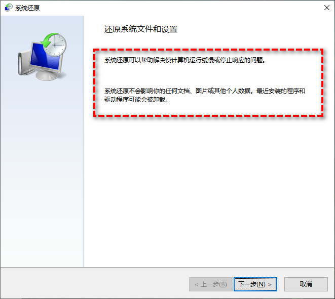 4. 按照屏幕上的说明完成还原。然后,重启电脑。