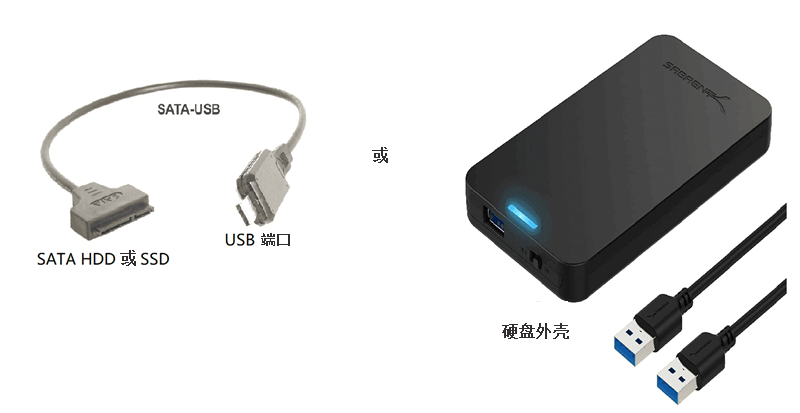 步骤1. 准备硬盘和USB转SATA数据线。如果您有足够的预算,您可以购买一个USB转SATA 机箱来连接您的磁盘。