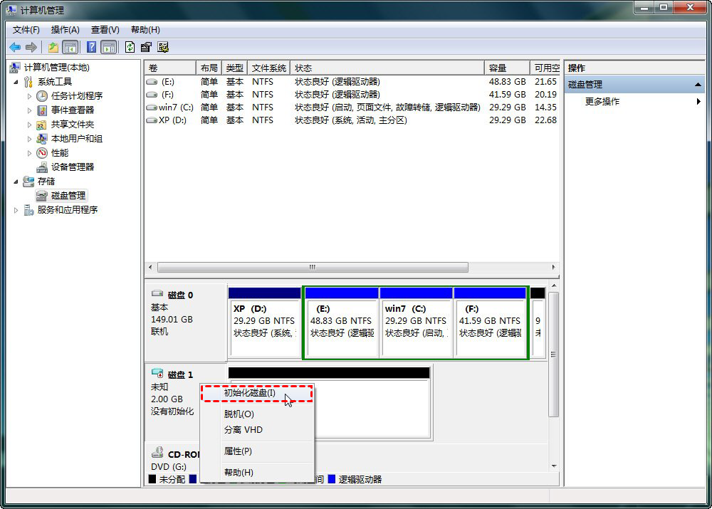 2. 右键单击标记为“未知”的磁盘,然后选择“初始化磁盘”。