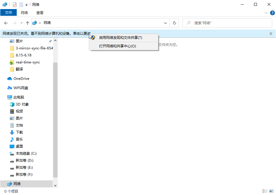 您还能够在“文件资源管理器” > “网络”中找到它。如果您看到诸如“网络发现已关闭”之类的错误消息。请单击“网络发现已关闭”横幅,然后选择“启用网络发现和文件共享”。