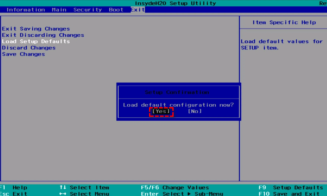 步骤 2:进入 BIOS 设置后,查找 “加载默认设置” 选项 (也可能称为 “加载设置默认值” )。请选择它并确认操作。