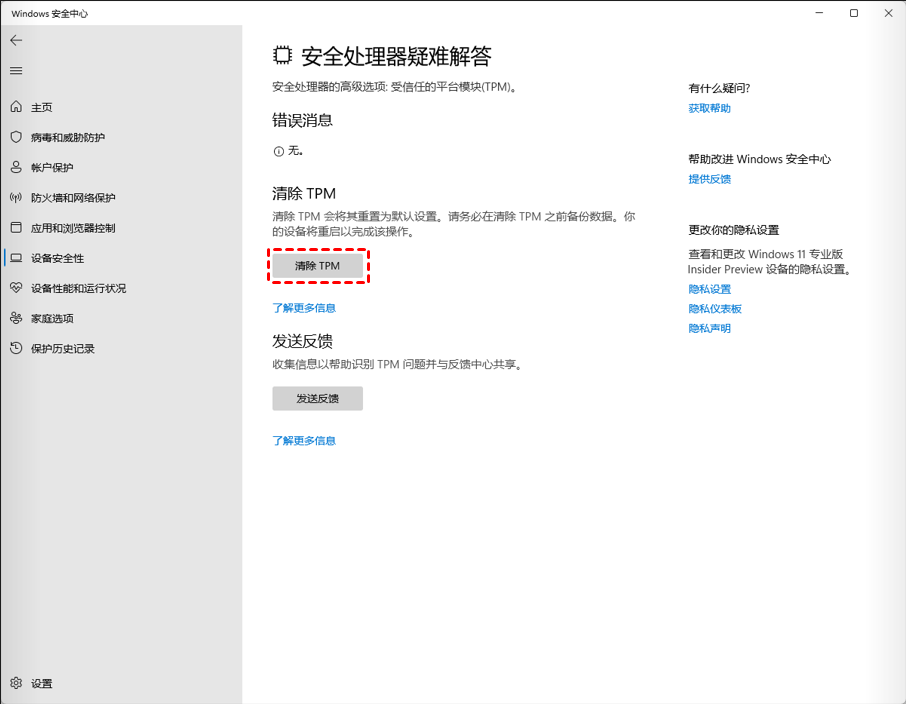 ✍ 注意:清除TPM可能会导致数据丢失,在清除之前建议您做一个备份。