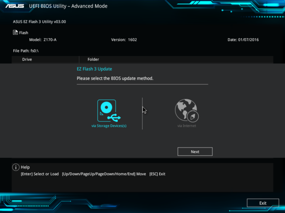 2. 从您的电脑主板制造商官网下载旧版本的BIOS更新文件到U盘,然后安装旧版本的 BIOS更新文件并等待更新过程完成。