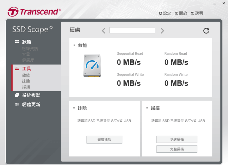 像三星有自己的官方的三星数据迁移软件一样,创见也有自己官方的创见SSD迁移工具——Transcend SSD Scope。每个购买了创见SSD产品的用户都将免费获得Transcend SSD Scope软件,它是一个数据迁移工具以及SSD维护程序。