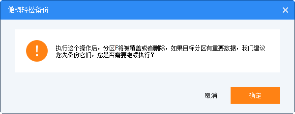 步骤3. 如果选择的位置是已使用的分区,则会弹出窗口提示此分区将被删除或覆盖,单击 确定 继续。