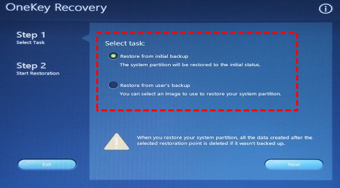 恢复过程中仅保留最基本的实用程序和应用程序。 也就是说,系统分区上已安装的程序和个人数据都将丢失。