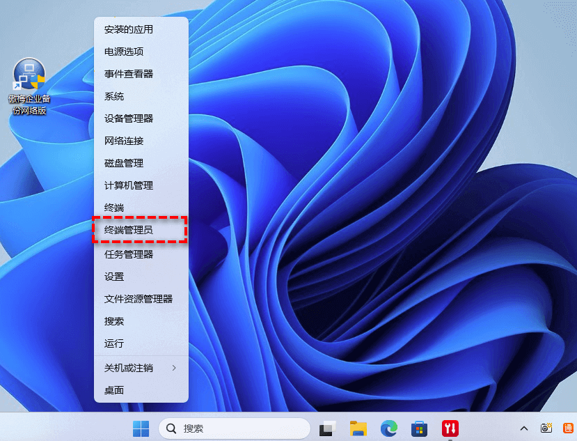 步骤1. 在Windows11电脑桌面上右键任务栏,选择“终端管理员”。