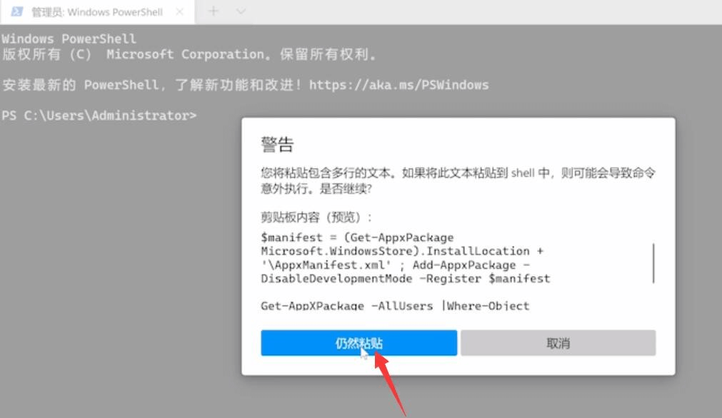 步骤3. 接下来您可能会遇到警告弹窗,点击“仍然粘贴”,然后再按Enter键执行命令。