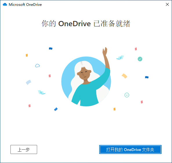 步骤5. 在“您的OneDrive已准备就绪”窗口中,单击“打开我的OneDrive文件夹”。