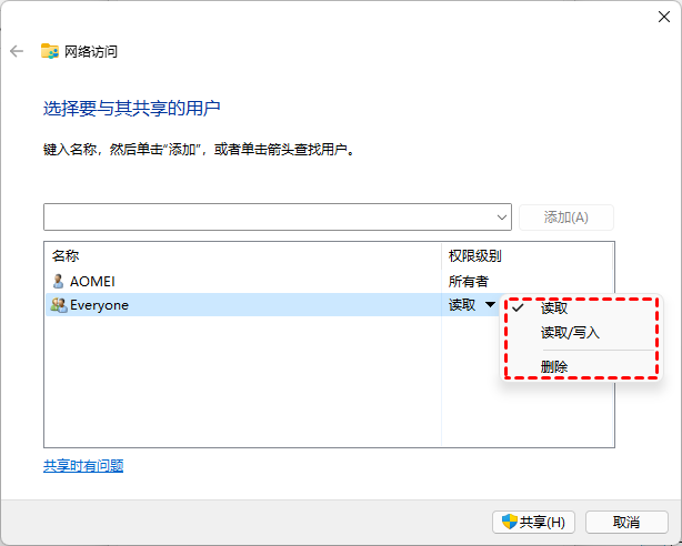 步骤5. 选择要共享文件夹的用户或组,然后单击“添加”按钮。