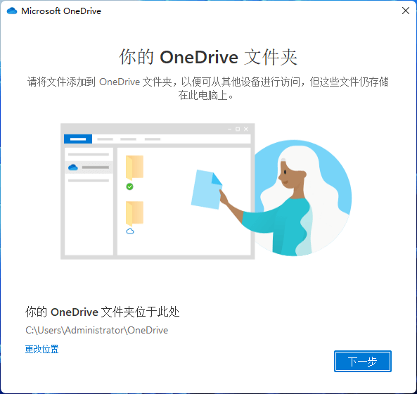 步骤3. 加载帐户信息后,您将看到您的OneDrive文件夹窗口和OneDrive的默认位置。确认并单击“下一步”。