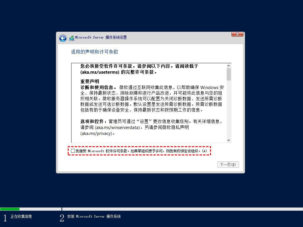 步骤4. 勾选接受许可条款协议,然后选择“下一页”。