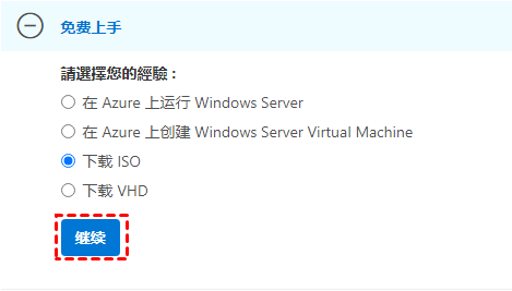 步骤1. 在微软官网链接Microsoft评估中心下载ISO,勾选“下载ISO”,然后点击“继续”。