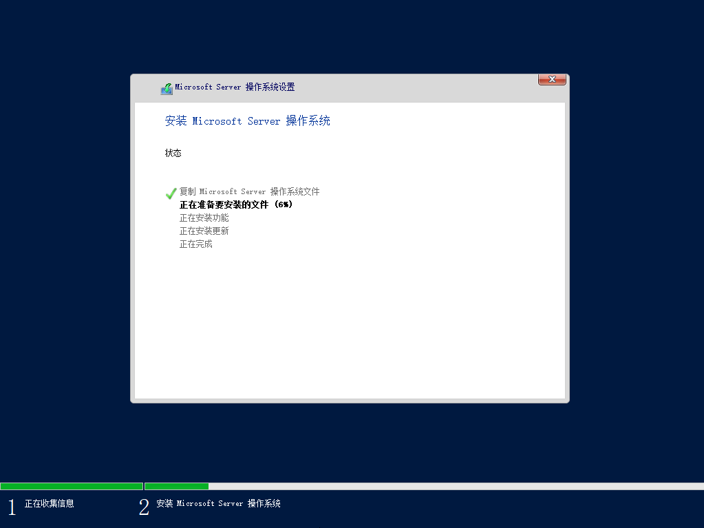 步骤7. 这里将会进入Windowsserver2022安装状态,稍等一会,大约几分钟。