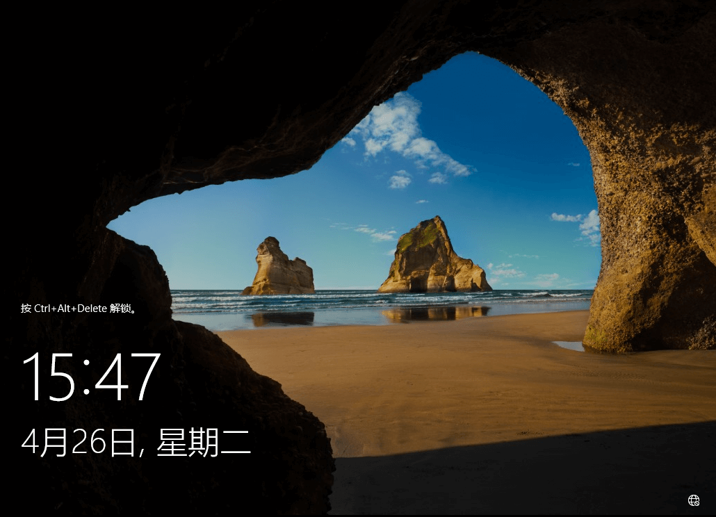 步骤10. 然后等待启动后会进入登录界面,需要你按“Ctrl+Alt+Delete”解锁登录界面。然后输入密码回车。