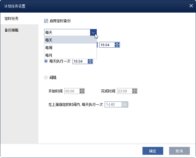 ◉ 定时任务:设置定时任务自动执行任务以一次、每天、每周或每月为频率。您甚至可以为不同的客户端指定不同的备份计划,完全/增量/差异备份都支持。