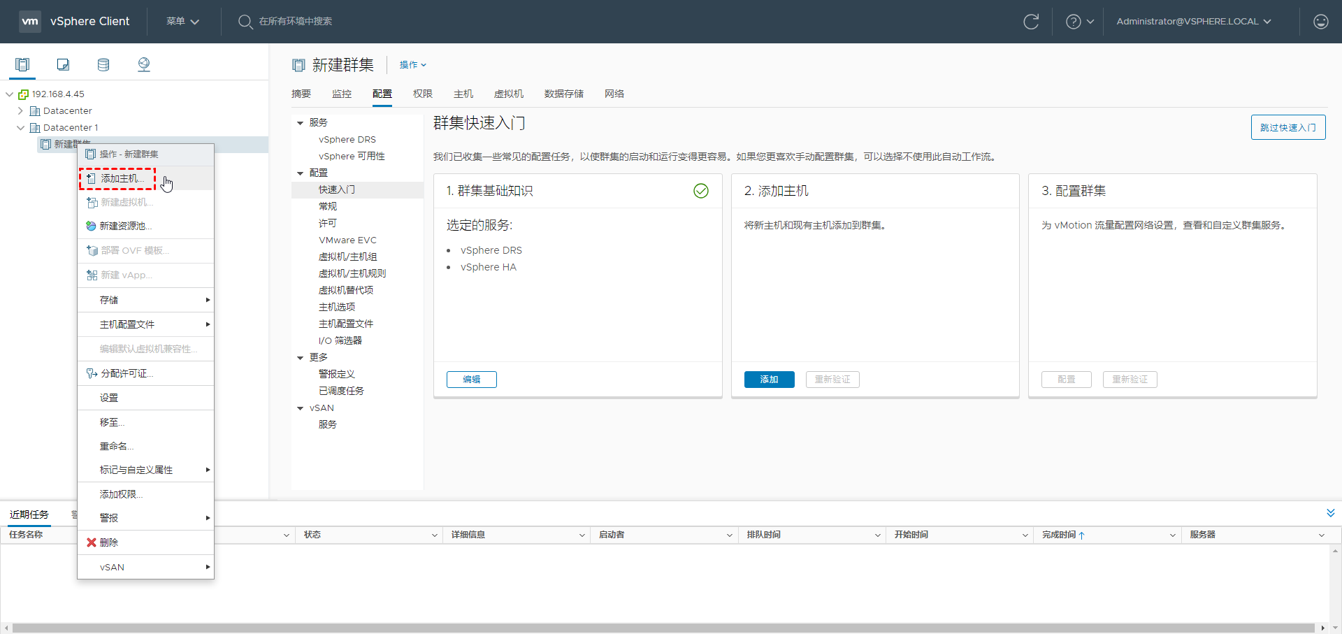 6. 右键单击新集群并选择 添加主机...