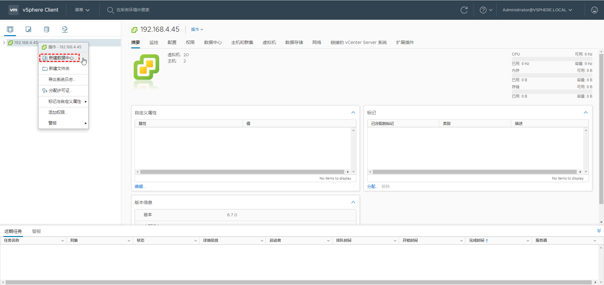 2. 右键单击您的 vCenter Server,然后选择 新建数据中心...