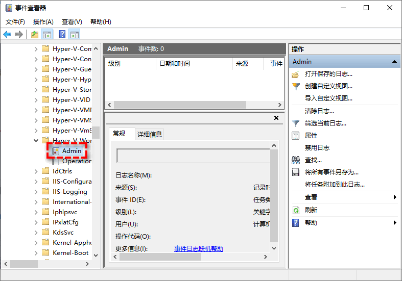 步骤2. 依次展开“应用程序和服务日志”>“Microsoft”>“Windows”>“Hyper-V Worker”。