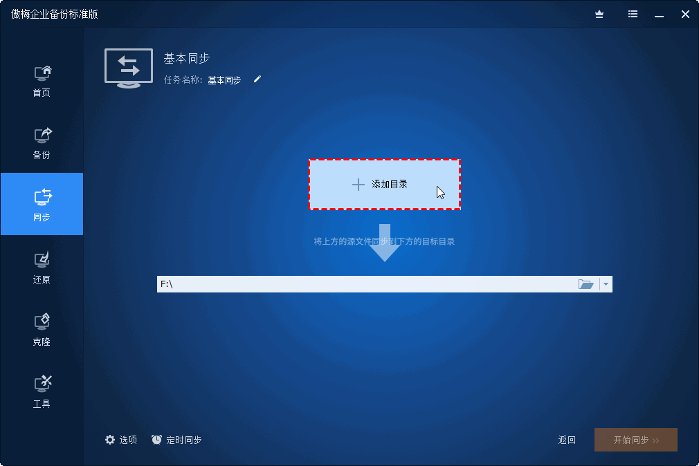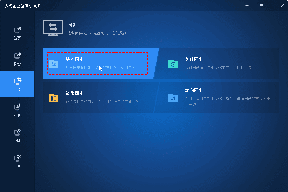 1. 单击 主窗口上的"同步" >"基本同步"。