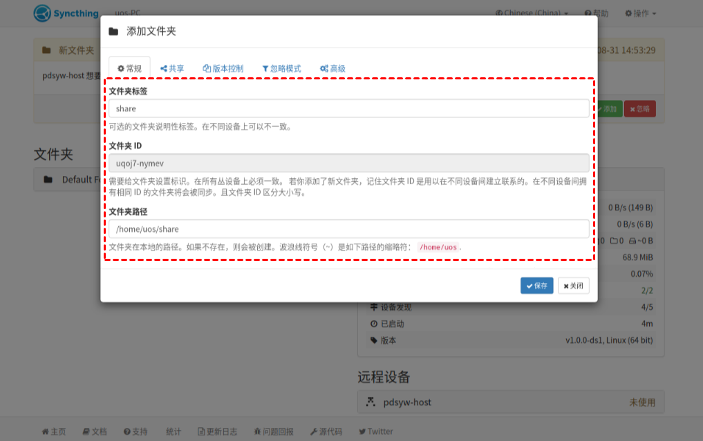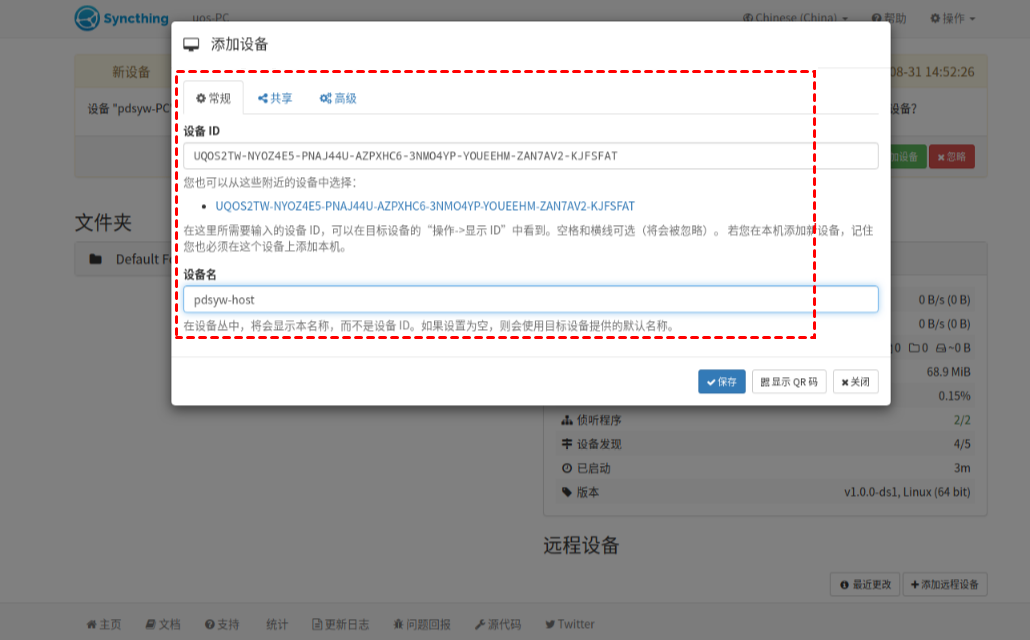 - 4. 连接设备:在“设备”选项卡中,选择要同步的设备,点击“编辑”按钮,将创建的文件夹共享给该设备。