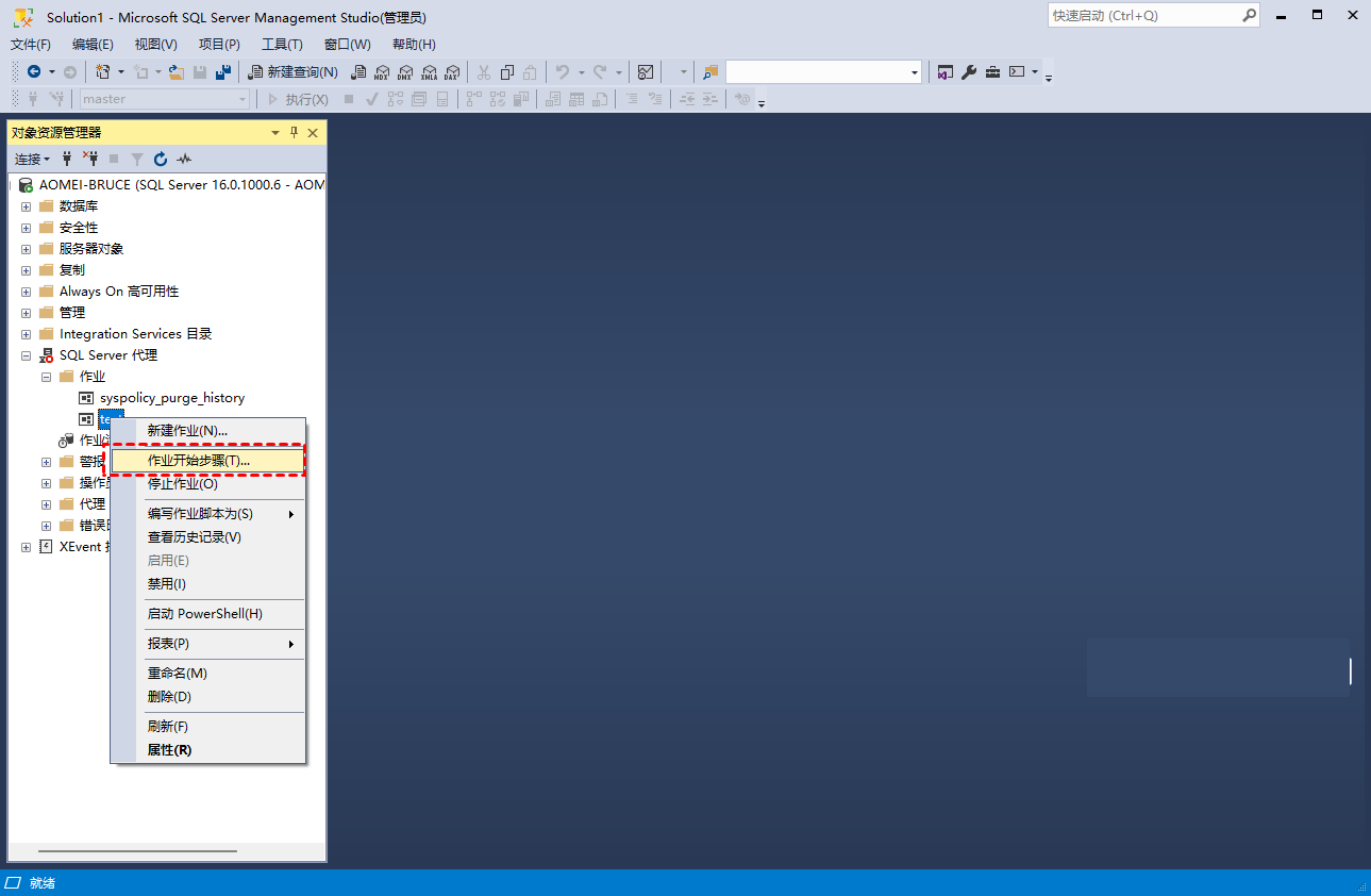步骤4. 作业开始步骤:SQLserver创建定时任务完成之后,点击“SQL Server代理”>“作业”>“作业开始步骤”以执行定时备份任务。