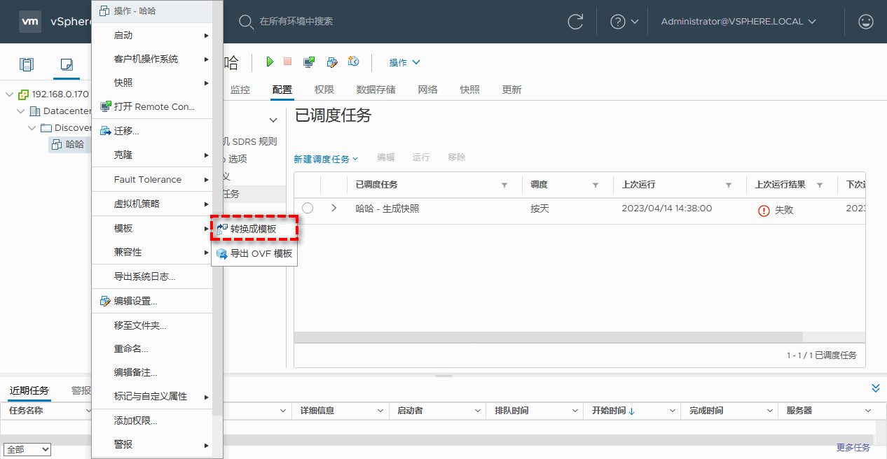 右键单击虚拟机并选择“模板”->“转换成模板”。