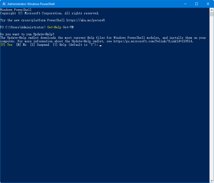 注意:开始之前,您可能需要运行“更新帮助”来安装Windows PowerShell模块的新帮助文件。如果您有一段时间没有更新它,在使用“获取帮助”时可能会提示您更新它。键入Y并按Enter继续,然后您将能够再次进行查询。