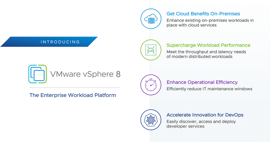 VMware于2022年10月11刚刚发布了vSphere 8.0的稳定新版本。新的vSphere 8.0支持每个虚拟机上限8个vGPU,与vSphere 7 U3相比增加了两倍,使您能够运行越来越强大的虚拟机,并更快地执行任务。此外,vSphere 8还有更多新功能。