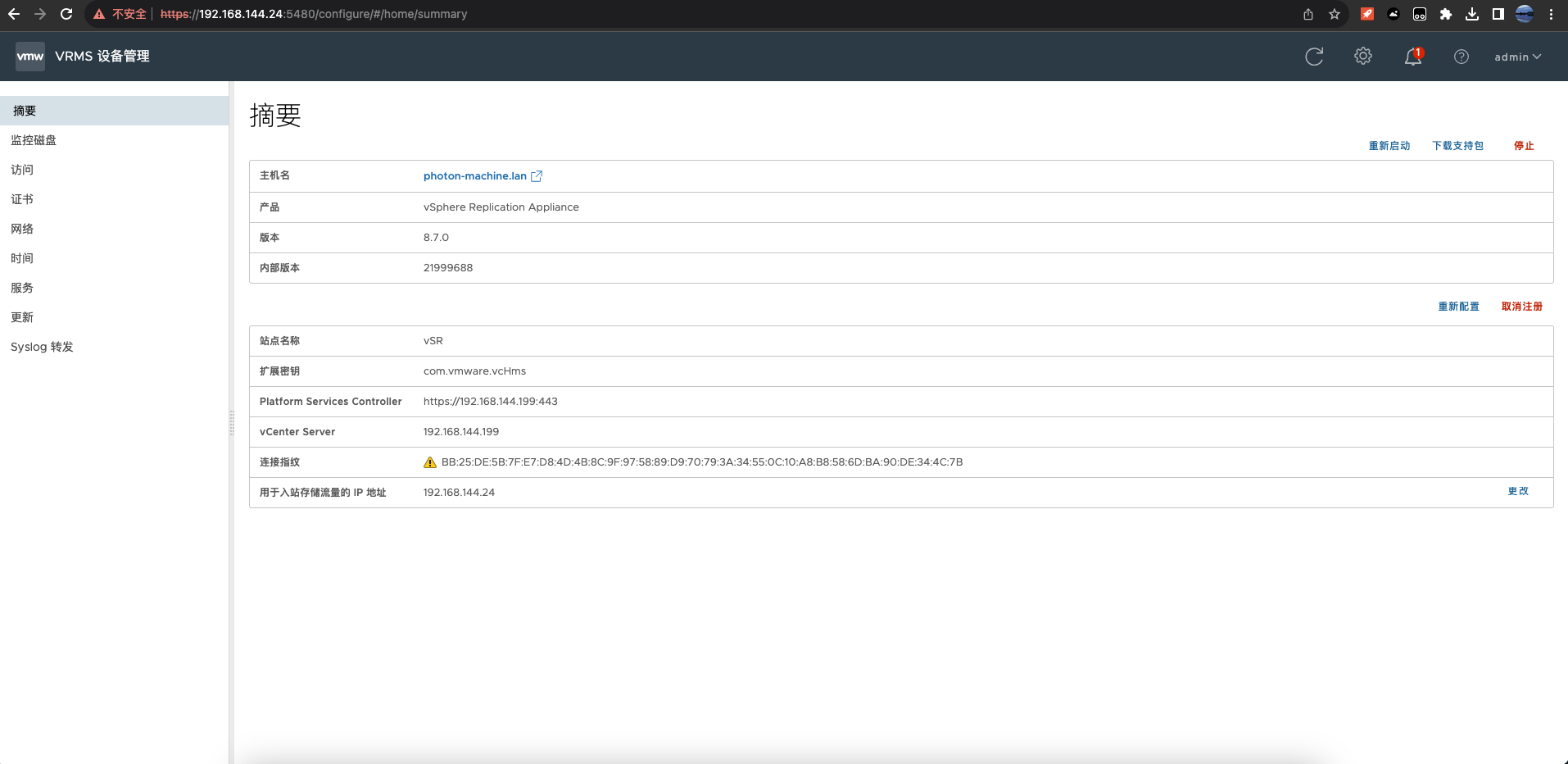 2. 以 root 身份登录到 vSphere Replication 设备:https://ip_address_of_appliance:5480/。