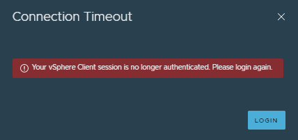 连接超时。vSphere客户端会话不再经过身份验证。请重新登录。