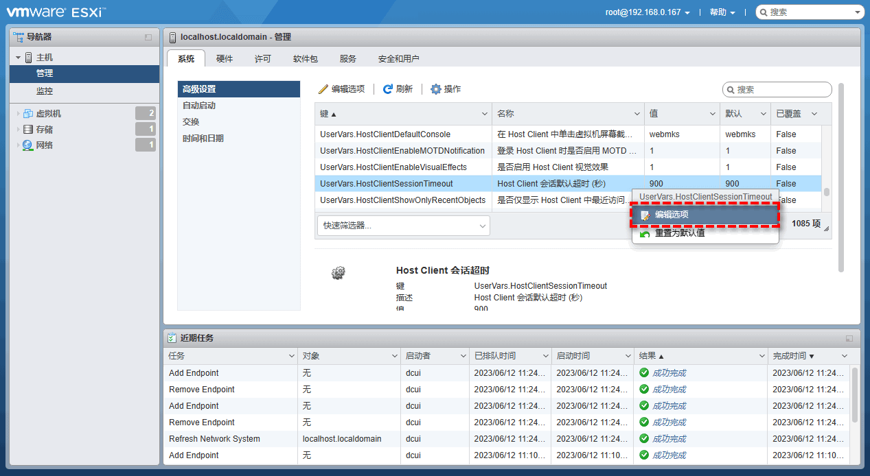 🔎 如何编辑vSphere客户端超时设置