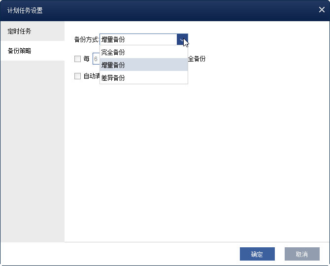 3. 然后,设置备份设置、定时任务或备份保留策略。