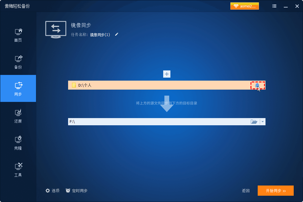 1. 单击左侧的“同步”选项卡,然后选择“镜像同步”。