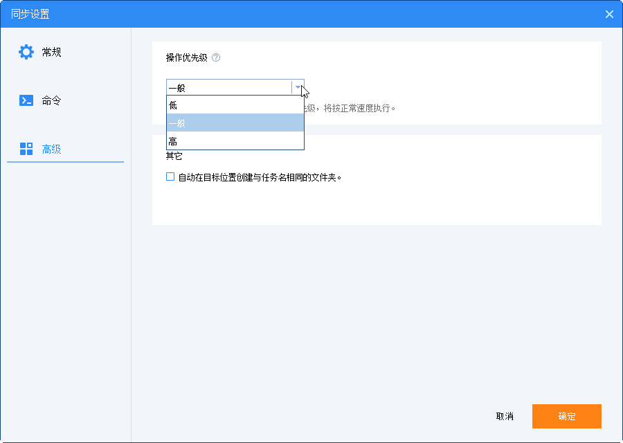 • 操作优先级:请选择任务的操作优先级。优先级越高,任务执行速度越快。
